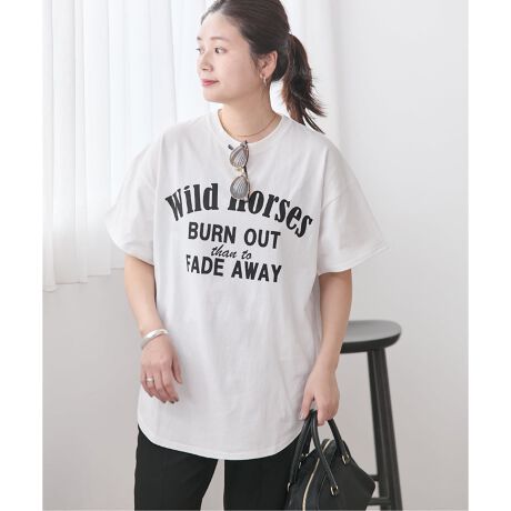 裾がラウンドになって1枚で完結!便利なロゴTシャツ。