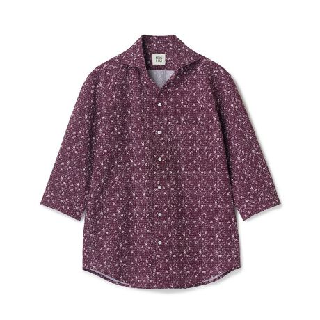 細かい千鳥格子と小花を組み合わせた独創的な柄と、襟元を美しく見せるワンピースカラーが魅力の七分袖(7分袖)シャツ。
