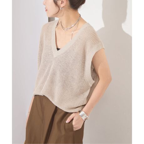 【osedit 】WASHABLE LINEN Vベスト(品番:26080400317020)