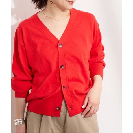 肌触りの良いコットン素材のVネックカーディガン。