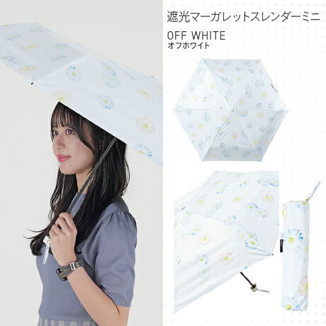遮光率100%、紫外線遮蔽率100%、UPF50+、遮熱性効果のある一級遮光生地を使用し、強い日差しや暑さをしっかり遮ります。雨の日にも安心なはっ水・防水効果もあり、耐水圧の検査も20,000mm以上を計測していますので、晴雨兼用日傘としてオールシーズンお使いいただけます。スレンダータイプの傘骨なので、一般的な遮光折りたたみ傘に比べて細く軽い。バッグの隙間やポケットに収納でき携帯に便利です。指や爪をはさみにくい「安全ろくろ(ストッパー)」を使用しているので、ボタン部分を押して開閉でき安心してお使いいただけます。※記載の紫外線遮蔽(UVカット)率・UPF値・遮光率・耐水圧値は生地の状態での測定値であり、傘本体の性能を保証する数値ではございません。また、生地に施された縫製などのUV加工生地以外の部分も同様です。