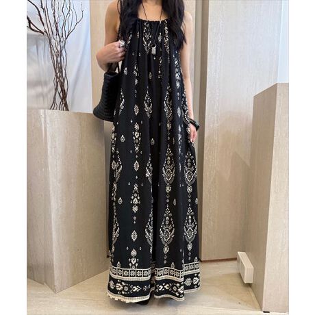 ナチュラルに着こなすダマスク柄ロングキャミワンピース