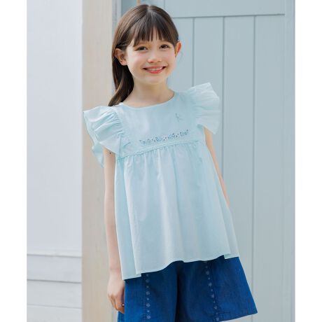 ■デザインヨークにお花の刺繍とレースの切替えを施したペプラムデザインのブラウスです。