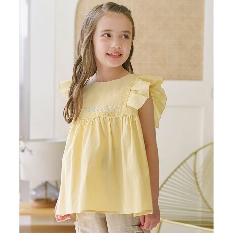 ■デザインヨークにお花の刺繍とレースの切替えを施したペプラムデザインのブラウスです。