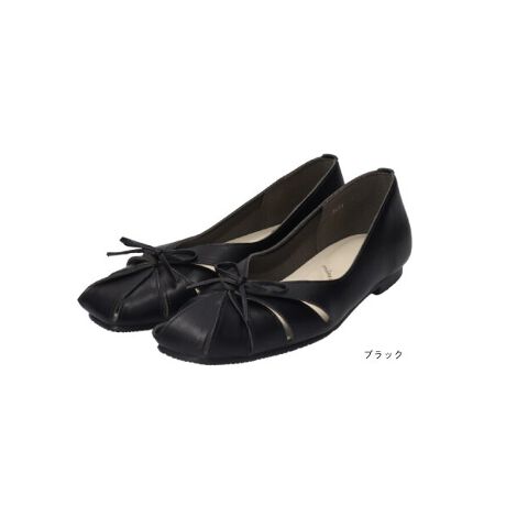 すっきりとしたスクエアトゥに、立体感のあるリボンをあしらった上品なフラットシューズ。