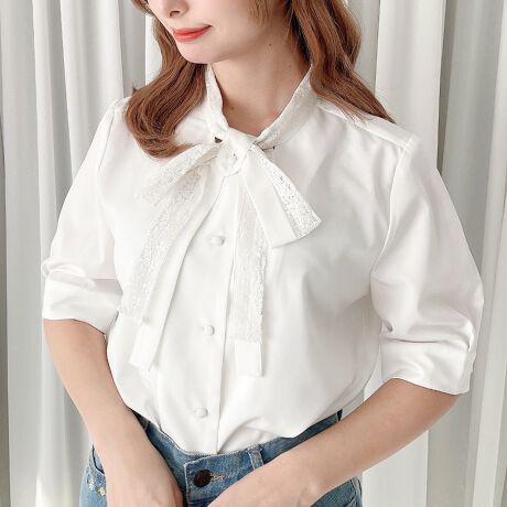 マルイウェブチャネル   /   フィント   /   トップス   /   ブラウス   /   レースレイヤードボウタイ5分袖ブラウス 洗える