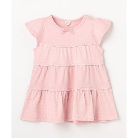 ■デザインドット柄を交互にティアード使いにしたチュニックです。裾に広がりがあるティアードシルエットでゆったり着用いただけます。