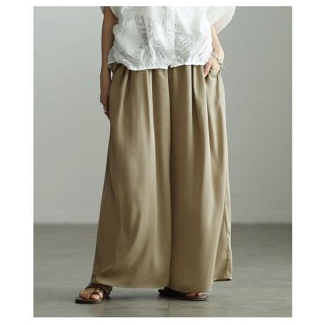 流れるようなドレープラインが美しい、マキシ丈ワイドパンツ。動くたびにしなやかに揺れ、上品な存在感を演出します。リラックス感がありながらも大人っぽく決まる、頼れる一本です☆