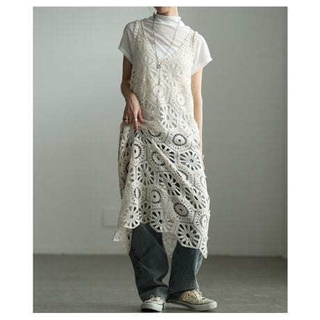 繊細なクロシェ編みが目を惹くワンピース。レイヤードスタイルに取り入れるだけで、いつものコーデがぐっとこなれた印象に。さっと一品足すだけで上級者見えが叶うアイテムです☆