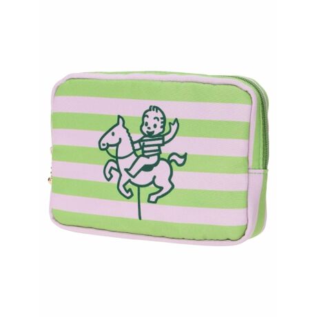 [型番:26410708208]爽やかなボーダー柄にキャラクタープリントを施した、目を惹くデザインのポーチ。マチ付きで見た目以上に収納しやすく、コスメや小物をすっきりまとめて持ち運べます。デイリー使いはもちろん、旅行や外出時の小物整理にも便利なアイテムです。