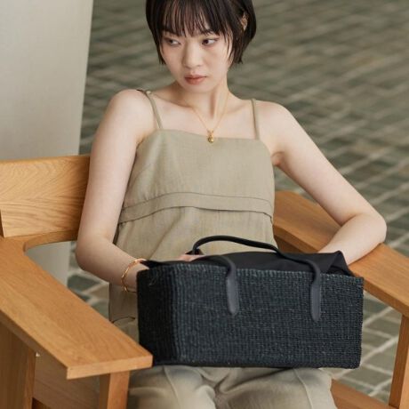 シンプルでありながらスタイリッシュな印象を与えるかごバッグ。