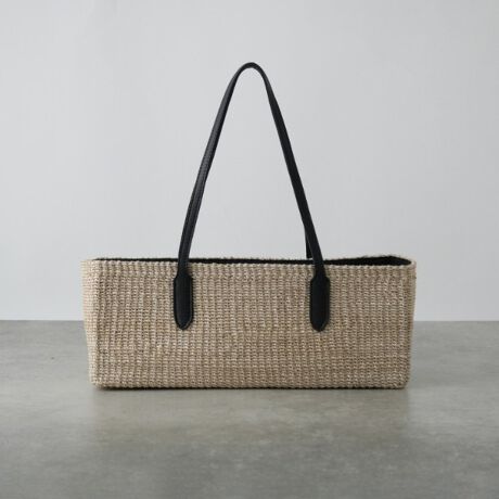 シンプルでありながらスタイリッシュな印象を与えるかごバッグ。
