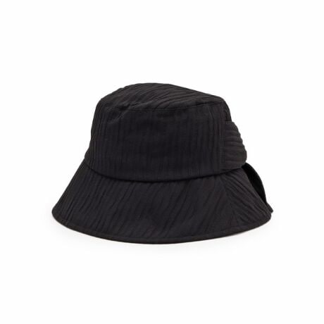 独特のシボ感が魅力のクレープ生地を全面に使用した、表情豊かなバケットハット。