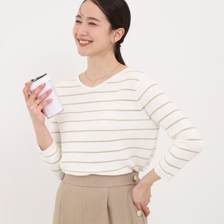 お仕事着としてもデイリーにも使いやすいベーシックなVネックニット。