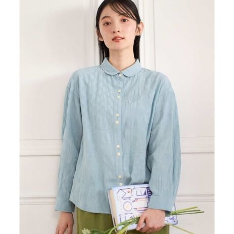 丸みのある衿と表情のあるドットジャカードが、シンプルなコーディネートにもさりげないアクセントをプラスしてくれるブラウスです。スカートと合わせればやわらかく女性らしい印象に、パンツと合わせれば程よくカジュアルで軽やかなスタイリングに。着丈のバランスがよく、タックインせずそのまま着てもすっきり決まります。前開きデザインなので、インナーにカットソーやタンクトップを合わせて軽い羽織りとしても活躍。季節の変わり目や冷房対策にも取り入れやすく、着こなしの幅が広がります。同素材のフリル衿ブラウス[NGBGD31290]もございます。