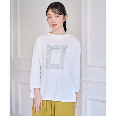 ナチュラルな光沢感と、つるりとしたなめらかな表面感が魅力の天竺カットソー素材を使用したセミロングプルオーバーです。胸元にはロゴ刺繍をスクエア調にあしらい、さりげないアクセントをプラス。シンプルなデザインの中にオリジナリティを感じられる一枚に仕上げました。また、衿ぐりの切り替え部分には、同じ糸を使用しながら編み方を変えたフライス素材を使用しており、異素材の変化がシンプルなデザインの中にさりげない表情をプラスしています。