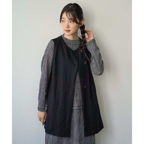 同素材のパンツ[NGLGF39180]をあわせてセットアップでの着こなしはもちろん、布帛ライクできちんと感のあるスタイリングが叶うジレは、程よい丈感でロングスカートやワイドパンツ、半端丈のスカートともバランスよくお楽しみいただけます。Tシャツや真夏はノースリーブにも羽織るだけで、こなれ感のあるスタイリングに。デイリーシーンから、ちょっとしたお出かけシーンにも重宝する一着です。