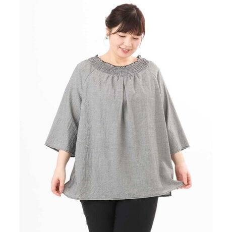 ポコポコとした立体感のある表面感に、ギンガムチェックをのせた大人可愛いブラウス。