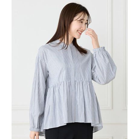 ■デザインスタンドカラーと細やかなピンタックデザインがクラシックな印象をあたえるブラウス。裾のギャザーフレアーのシルエットに前後差のデザインを取り入れる事で、後ろはヒップラインを隠し、フロントは目線を高く持ってくる事で足長効果も〇。袖口はゴムイン仕様で袖丈の調節が可能。一枚で様になるデザインは、シンプルなパンツ合わせにおすすめです。 ■素材綿100%の先染め素材。綿特有の肌ざわりの良さと、軽量で通気性に優れているデニムライク素材です。インディゴ見えする反応染料のため、色落ちしにくいメリットも。柔軟剤仕上げで、カジュアルでありながらナチュラルな柔らかい表情を演出してくれる素材です。・水洗い可・フロントボタン・袖口ゴム仕様同素材のギャザーフリルブラウス品番:10-62182027■サンプル撮影商品画像の商品はサンプルです。実際の商品とはサイズや色味、素材、デザイン等の仕様が若干変更になる場合がございます。■照明の関係により、実際の製品とは色味が違って見える場合があります。またパソコン・スマートフォンなどの環境により、若干製品と画像のカラーが異なる場合もございます。■サイズ表記はあくまで目安となります。