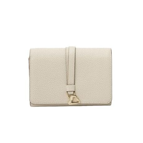 カッティングハートにパールをあしらったチャームを、ベルトデザインにぶら下げたディテールが印象的で、フェミニンさと上品さを絶妙にバランスよく表現した「カルノ」シリーズ。オフホワイトやピンクを基調とした優しいカラーリングには、ゴールド金具を効かせることで全体を引き締め、甘くなりすぎない洗練された印象に仕上げています。ハートモチーフとパールの組み合わせが、持つたびに気分を高めてくれるデザインポイントに。淡く柔らかなカラー展開がコーディネートにもなじみやすく、デイリー使いはもちろん、ギフトにもおすすめのシリーズです。【メーカーサイズ寸法(実寸)】サイズ:H:9/W:13/D:5/重さ:180g/外装背面フリーポケット:1/内装札入:2/小銭入(仕切り有):1/フリーポケット:5/カードスロット:17