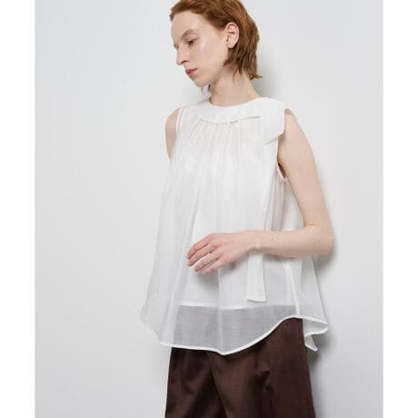 オーガンジーネックリボンブラウス