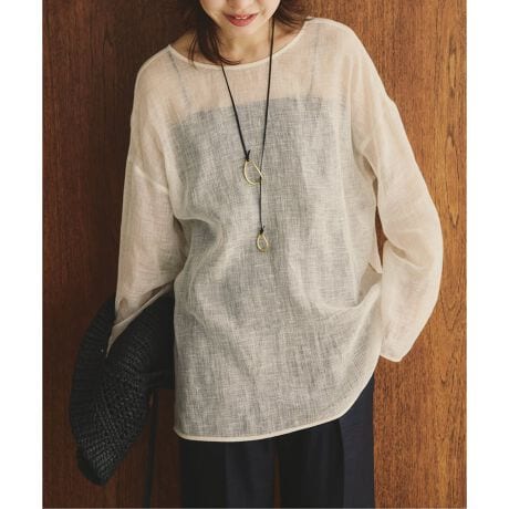 清涼感のあるからみ織りのリネンで作ったプルオーバー。