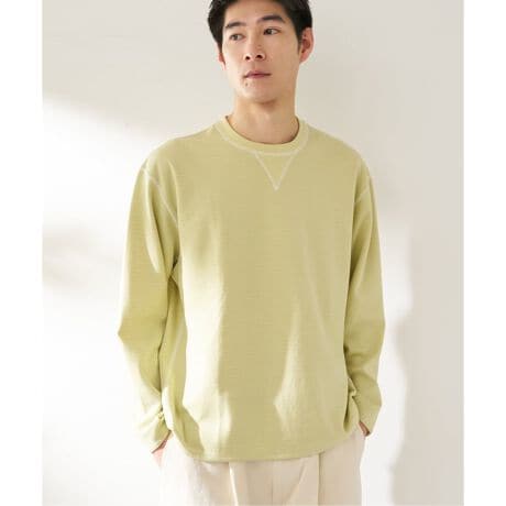 ロングTシャツとしてはややしっかりめの肉感があり、1枚で着ても頼りがいのある素材感です。