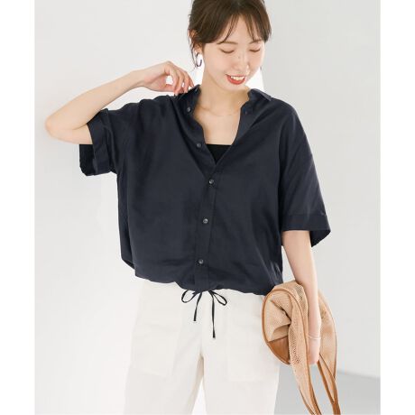昨年ご好評いただいたリネンブレンドフレンチヘムギャザーシャツと同素材を使用した新型シャツ。