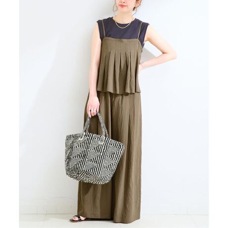 パンツ・キャミソール・タンクトップが揃った着回し力抜群のアイテムです。パンツはリラックス感のある穿き心地ながら、すっきりとしたシルエットで大人っぽく着こなせます。ウエストゴム仕様でストレスフリーな穿き心地のイージーパンツです。