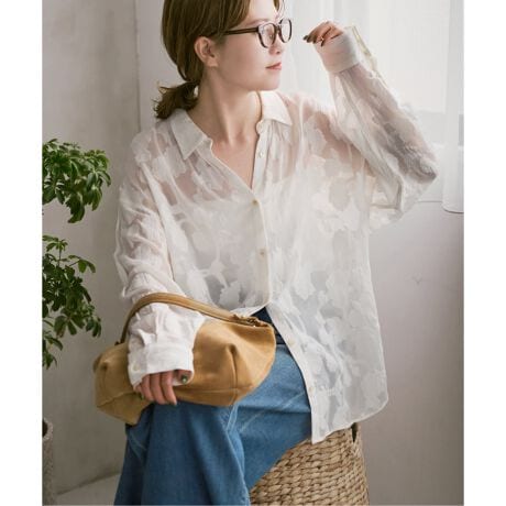 立体感のあるフラワージャガードが映える、上品なシアーシャツ。