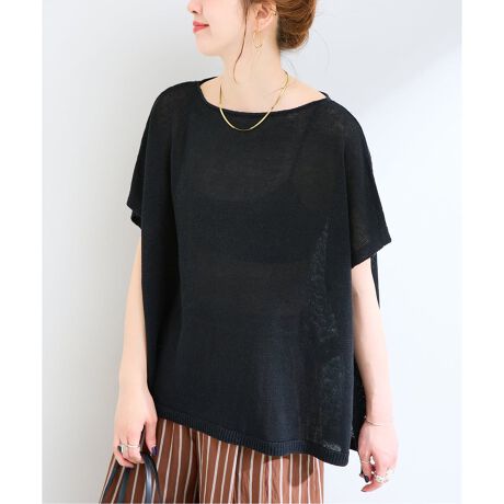 フレンチリネン100%の涼しげなポンチョ型プルオーバー。