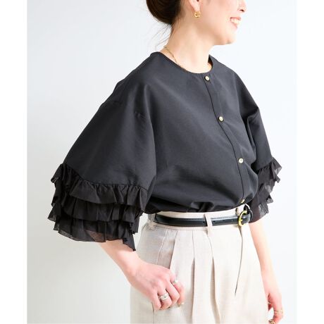 《予約》手洗い可 / UVcare / 接触冷感 / add Function フリル袖ブラウス