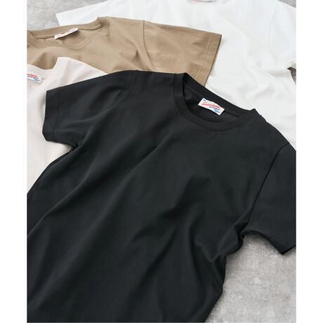 シルエットは定番のファインコットンTシャツと同様で、シンプルで着回しやすいデザイン。