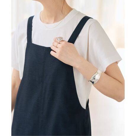 シルエットは定番のファインコットンTシャツと同様で、シンプルで着回しやすいデザイン。