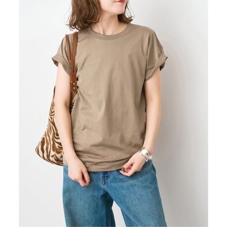 シルエットは定番のファインコットンTシャツと同様で、シンプルで着回しやすいデザイン。