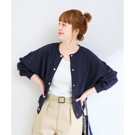 裏毛素材を使用したクルーネックカーディガン。
