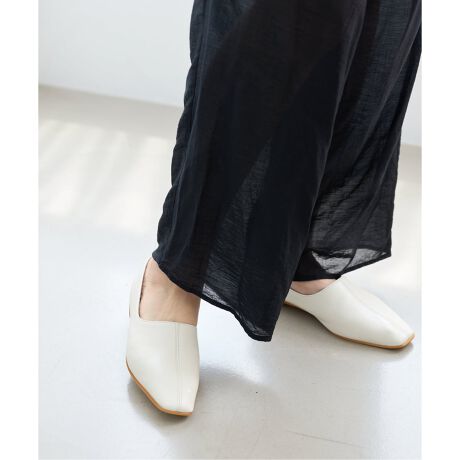 甲を覆う深めのシルエットが特徴的なフラットシューズ。