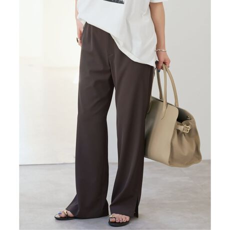 細身のストレートシルエットをベースに、脇に施したスリットがさりげないアクセントに。裾にかけて自然なフレア感が生まれ、脚のラインをすっきりときれいに見せてくれます。