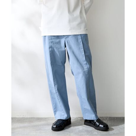 程よくゆったりとしたリラックス感と、フロントタックによる上品さを両立したツイルパンツ。