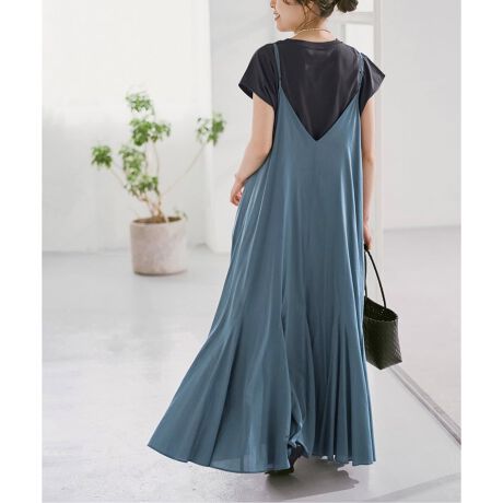 華奢なストラップと、たっぷりとしたフレアシルエットが魅力のキャミドレス。