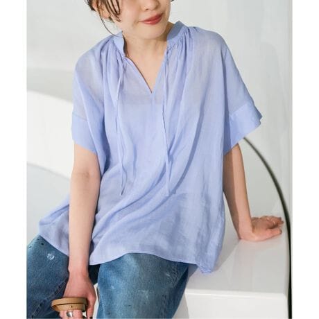 ラミー特有の軽さとほのかな光沢に、テンセルのしなやかさをプラスした着心地の良い一枚です。