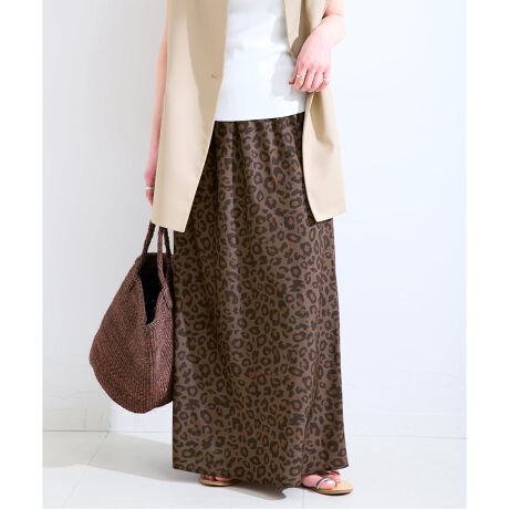 落ち着いトーンに仕上げたレオパード柄スカート。