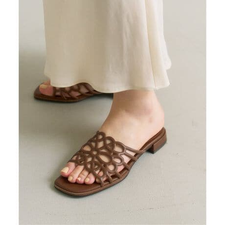 立体感のあるぷっくりとしたアッパーに、繊細なフラワー柄のカットワークを施したデザイン。