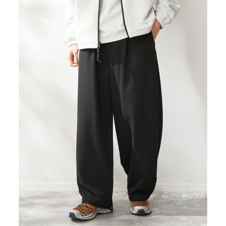 深めに入れたタックと、丸みのあるワイドテーパードシルエットが特徴のスラックス。