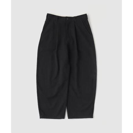 深めに入れたタックと、丸みのあるワイドテーパードシルエットが特徴のスラックス。