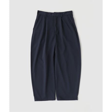 深めに入れたタックと、丸みのあるワイドテーパードシルエットが特徴のスラックス。