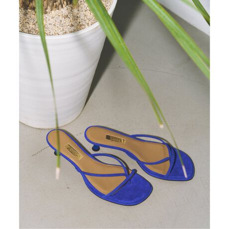 今年トレンドのヒールトングをナローストラップ×キトゥンヒールで繊細な印象に。