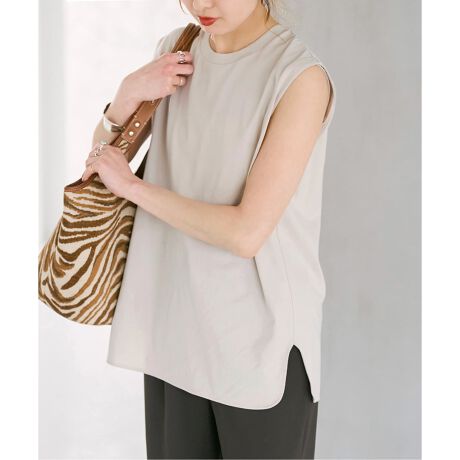 シルエットは定番のファインコットンノースリーブプルオーバーと同様で、シンプルで着回しやすいデザイン。