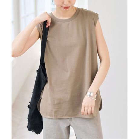 シルエットは定番のファインコットンノースリーブプルオーバーと同様で、シンプルで着回しやすいデザイン。
