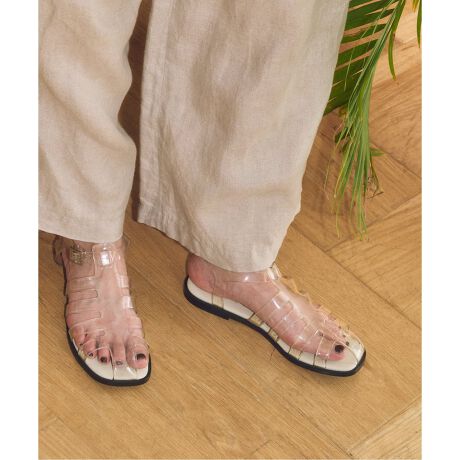 クリアなPVCのアッパーが、抜け感とモードな雰囲気を与えてくれるフィッシャーマンサンダル。